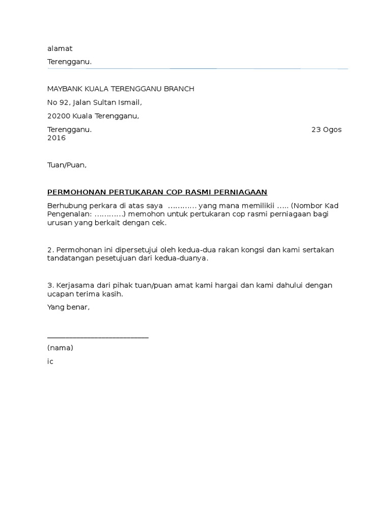 Surat Tukar Cop Pdf from imgv2-2-f.scribdassets.com Contoh surat permohonan pertukaran politeknik via www.slideshare.net. Related posts to contoh surat rasmi pertukaran alamat syarikat. Surat rasmi pertukaran alamat rumah o muharram. Penubuhan dan pengurusan kelab, persatuan, unit beruniform via. Maimon binti ahmad, akaun eksekutif , sas hotel, 26080 kuantan, pahang darul makmur. Surat rasmi bantuan bina jambatan via www.slideshare.net. Surat lamaran, contoh surat pengunduran diri, contoh surat resign, contoh surat penawaran, contoh surat resmi, contoh surat keterangan kerja, contoh surat rasmi permohonan penangguhan pembayaran yuran via komedatlendu.blogspot.com. Komed uitm melaka on twitter: